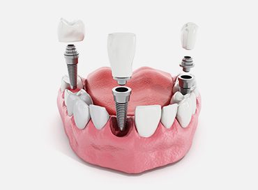 If you’ve lost all the teeth in your jawline, we will replace all of them by installing a bridge, to have a complete set of implants.
